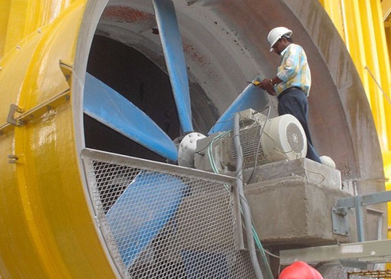 Condenser cooling fan, fan blade alignment, vent fan bearing inspection, vent fan balancing, vent fan alignment, vent fan hp cleaning 750 bar.